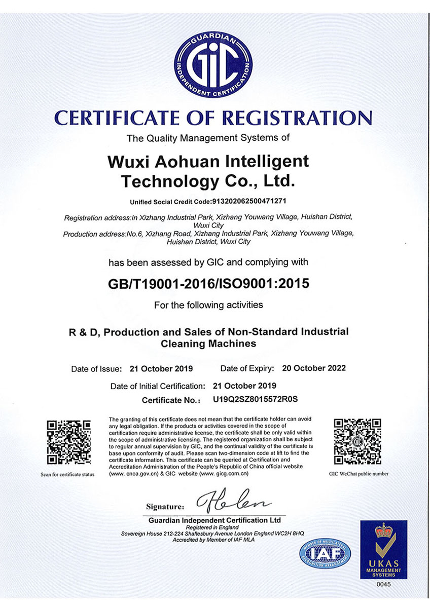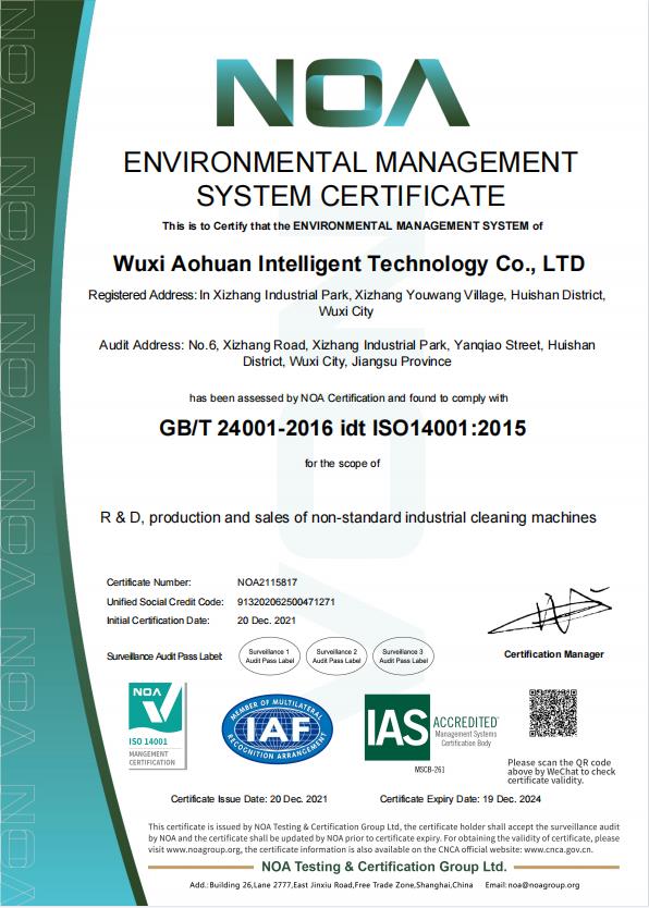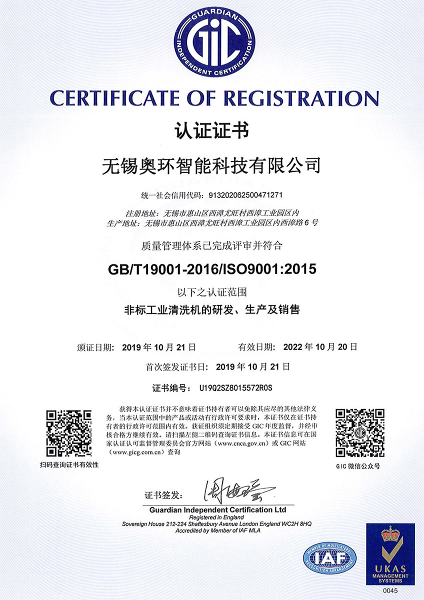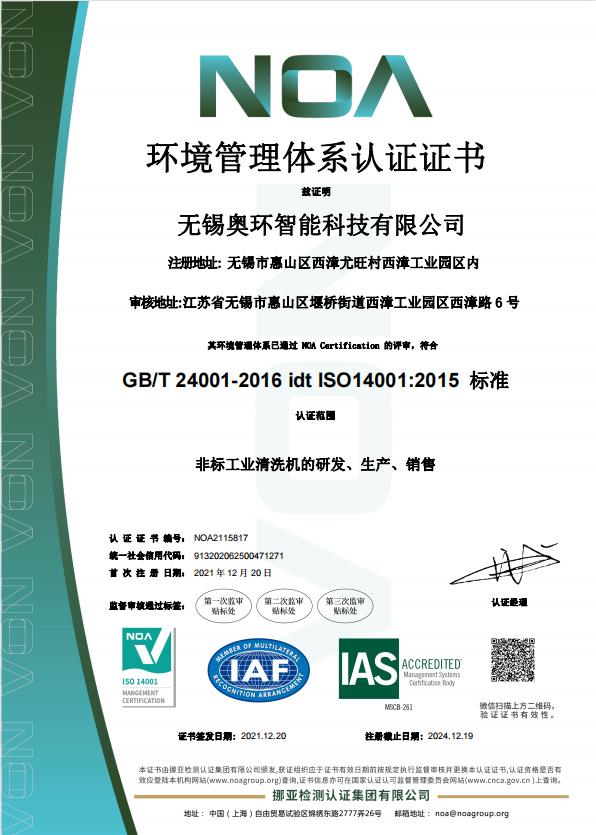 無錫奧環智能科技有限公司是專業從事機器人智能柔性清洗、高壓射流清洗和去毛刺、超聲波清洗、溶劑清洗設備研發、設計、制造、服務和提供工業清洗系統解決方案的科技型公司。公司成立于1990年,深耕工業清洗行業逾30年,積累了深厚的技術儲備。公司清洗及去毛刺設備廣泛應用于汽車工業零部件及其他工業零部件行業,尤其是動力總成系統和傳動系統的精密清洗及去毛刺,并不斷向船舶重工、軌道交通、工程機械和新能源領域拓展。國家級高新技術企業和科技型中小企業、省級創新型中小企業,工信部04級國家科技重大專項“電控共軌柴油噴射系統制造技術與關鍵裝備的研發及應用”子項目“500bar數控多軸聯動高壓清洗去毛刺機”的研發單位。
